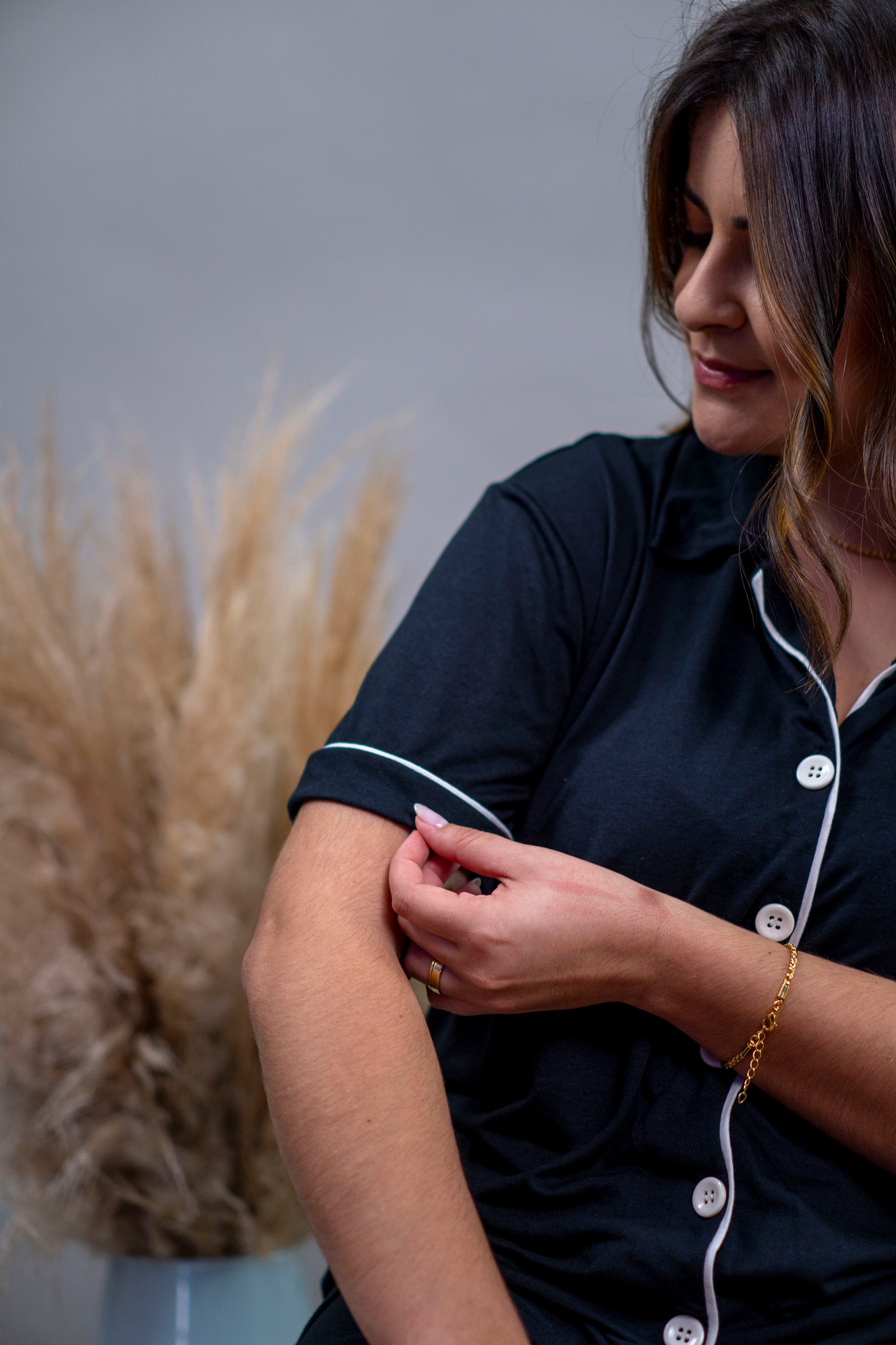 Acompanha camisa com botões e gola estilo camisaria, além de shorts com elástico na cintura e fita de malha decorativa. Confeccionado em tecido PV, oferece conforto, maciez e praticidade para o dia a dia. Perfeito para noites aconchegantes e para se sentir bem no seu lar. Todos os nossos pijamas são de fabricação própria. Cada detalhe é pensado, planejado e criado com dedicação, para que você receba muito mais do que uma peça: receba aconchego, cuidado e afeto. Confeccionado com todo o amor pelas mãos talentosas das nossas costureiras.